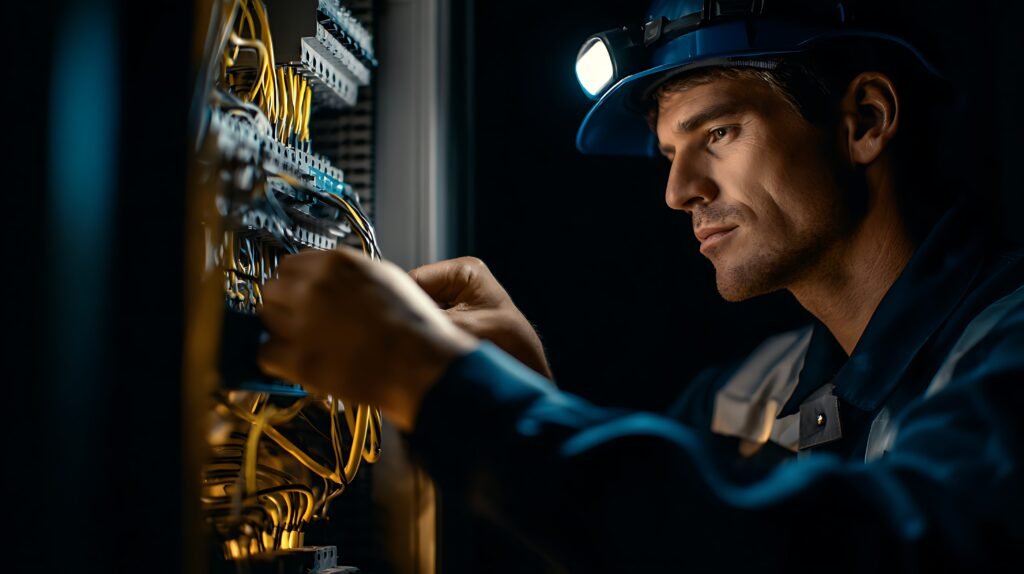 Executamos instalações e reparações elétricas com rigor técnico, assegurando segurança, eficiência energética e conformidade com as normas atuais.
